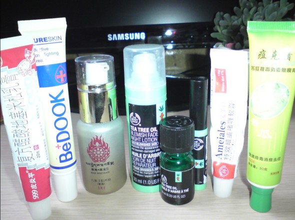 1、999皮炎平;2、bedook;3、九美子肌养粹;4、the body shop 茶树祛痘类;5、安美拉暗疮啫喱软膏;