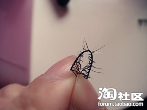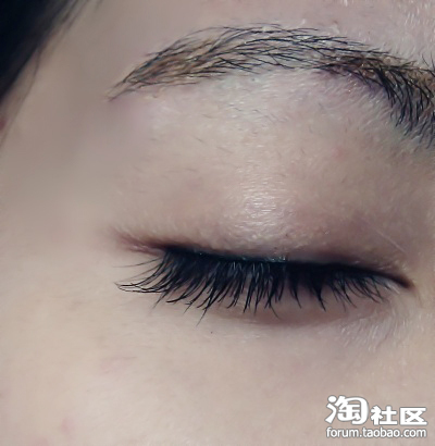 剪好的睫毛的贴于两只眼睛的眼尾上