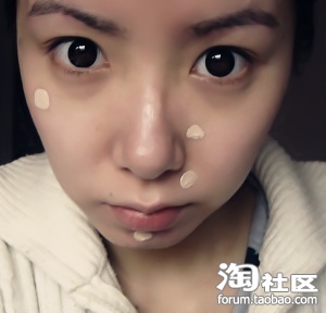 注意:也就是说粉饼不是涂抹于整个脸,只是遮瑕的地方