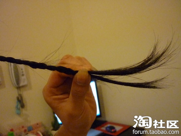 在扎好的马尾中,按发量,分三四份,先抽出其中一份,我的发量较少,分了三分