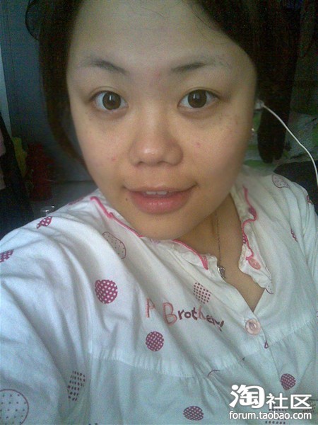 哈哈,俺在寝室里穿睡衣的,头发也没梳,皮肤状态稍好了点,但是因为熬夜加重了黑眼圈及痘印发红。。。额,还要拿镇静效果的爽肤水按按~~这就不发图了,我们开始打底吧。