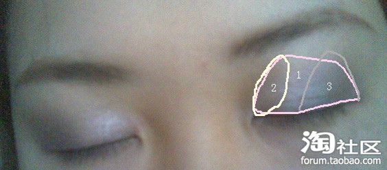眼影我也没分的很细,因为也就三个颜色,粉色,白色,灰色,当然必须都是那种粉粉淡淡的色彩,切忌不能用色彩浓的或者珠光特明显的,LINDA为了使手机拍出颜色来化的还是挺重的,姐妹们自己化的时候只要稍稍有点颜色就行了,毕竟是要清新点的感觉的。用的眼影是色彩地带的四色3D眼影,及卡姿兰单盒眼影烟灰色,色彩地带眼影球高光白。步骤及范围已经标出来了。没什么特别的手法,只要注意一定要手轻颜色要浅浅的上。
