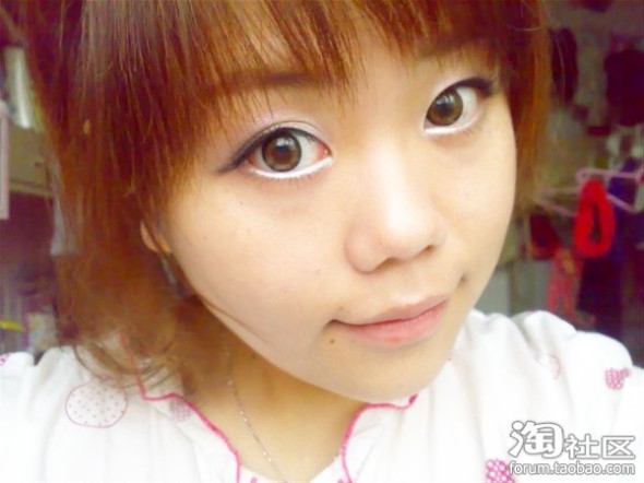 睫毛我先用棉签烫翘了,我真的不忍心夹我的睫毛了,太容易掉了。。。假睫毛是我自己剪得小半截,只贴眼睛的后三分之二。。。。不长不密。。。俺们要自然自然。。。。