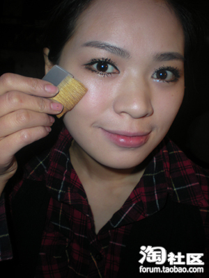 眼影 先用提亮色 用手指沾 均匀地涂抹
