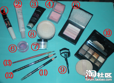 ⑾专业眼线笔 ⑿专业眉笔 ⒀唯魅秀眉刷 ⒁定妆粉扑