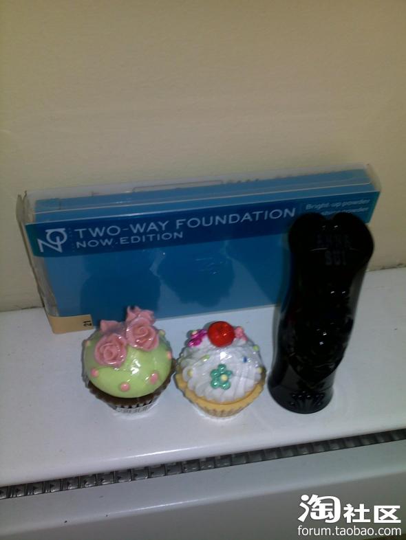小补充~~ZA两用粉饼~~前几天刚从箱子里翻出来的,在国内买的,大家都说好用,但是还没打开。前面两个小小的蛋糕是唇膏哦~~不知道什么牌子的,在护肤品店买滴,很可爱,是蛮滋润的,但是有点油。安娜苏新款唇膏,304号,很可爱的橘色系,但是好像不是很好上色~~