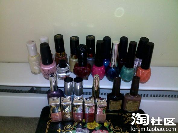 指甲油~~最实用的还是OPI,特别是护甲油。露华浓,最爱它家的巧克力色指甲油,显得手很白呢。安娜苏的红色带亮片指甲油还不错,很特别的感觉。很喜欢MAQUILLAGE指甲油,都是很特别的颜色,最喜欢它家的桃红色,橘色,淡绿色和宝蓝色,效果都非常的好。DIOR小瓶旅行装,个人感觉一般。SKIN FOOD指甲油,最不伤害指甲的一款。