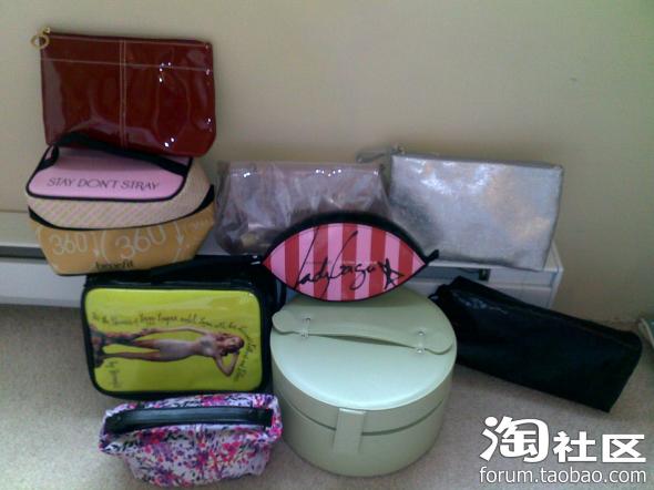 化妆包~~(从左到右,从上到下)雅诗兰黛红色化妆包,benefit STAY DONT STRAY化妆包,欧泊莱粉色透明化妆包,兰蔻银色化妆包,benefit,MAC唇形包包,MAC长款包包,PAUL JOE碎花包包,crabtree化妆箱。最爱MAC的唇形化妆包,上面是LADY GAGA的签名哦~~