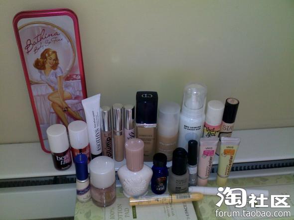 benefit新款眼部遮瑕膏还不错,可以持妆八个小时。benefit打底霜太滋润,感觉不是很好,适合皮肤比较干燥的MM吧。植村秀的泡沫打底,感觉好一般。MAKE UP FOR EVER的HD系类感觉还不错,09年底推出的打底霜之前的保湿液,据说可以增加数倍肌肤锁水能力。SANA的两瓶遮瑕膏,眼部和毛孔遮瑕膏,感觉还好,买它只是因为它很可爱。MAQUILLAGE遮瑕膏,用很久了,真的蛮好用的,像毛笔一样的刷头,使用很方便,都舍不得丢掉。