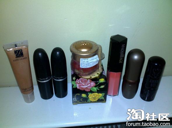 唇部彩妆~~雅斯兰黛,怪怪的颜色,很少用。MAC,持久性还不错,A19,杂志多期介绍的裸色唇必备。安娜苏,变色的唇膏,根据温度会改变颜色。SKIN FOOD,蜜罐保湿唇膏。MAQUILLAGE,自然色唇膏。SKIN FOOD,带有咖啡香味的唇膏。安娜苏,两用唇膏,可以用于肌肤的保湿。