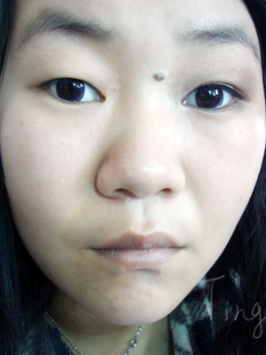 用粉扑涂抹均匀....照片上看 差距并不大....