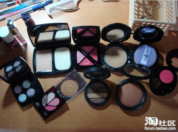 安娜苏的腮红,粉饼,蜜粉便携装,MAC的暗影粉,阿玛尼的眼影