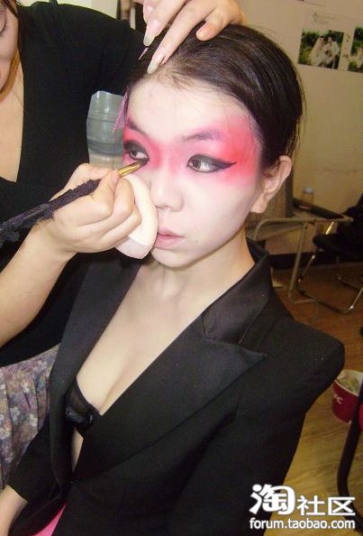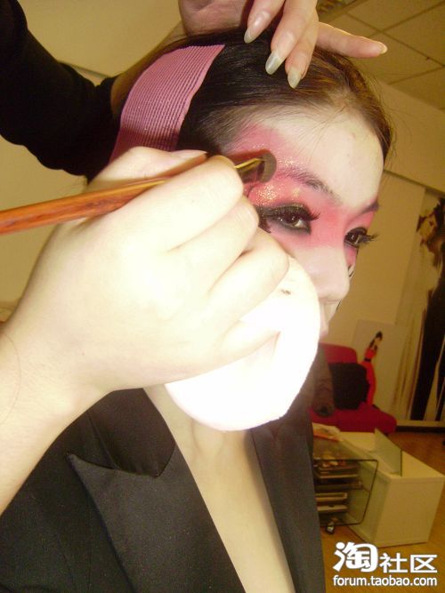 往上晕染开来!!眼摺上方用刷子刷出阴影(假眼窝的效果),