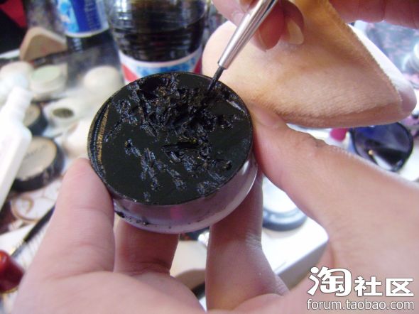 3.亮片黑色眼影从眼皮1/3开始涂~眼尾加重(很重喔),