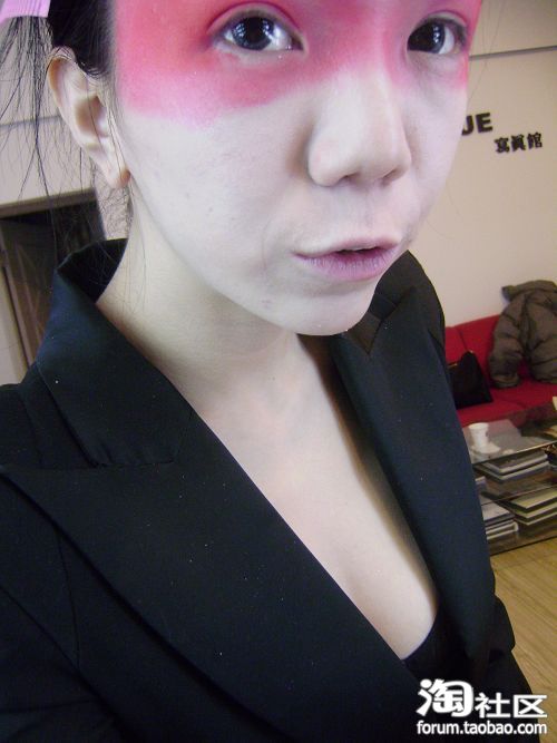 呈现半乱画状态,然后睫毛是假的,没有刷睫毛=..=