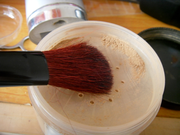再用化妆刷用蜜粉在轻轻刷一遍。