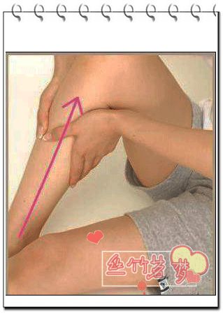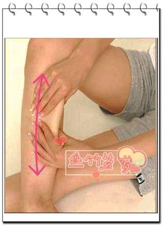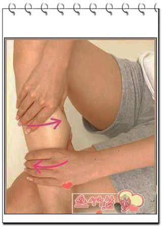 3 以大腿为主,从大腿根部到膝盖,以螺璇式按摩.