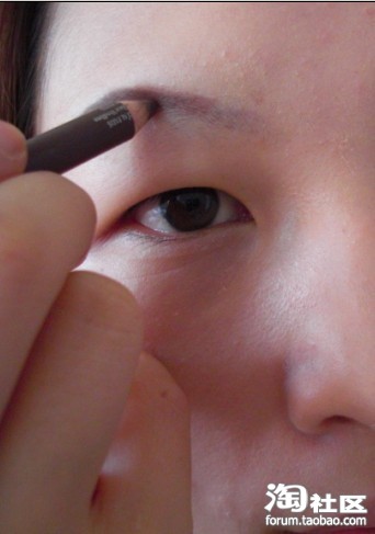 第二步 眉毛 记住眉毛要用两种颜色的化 眉头用颜色稍浅的 后面用较深的颜色 主要是找好眉峰