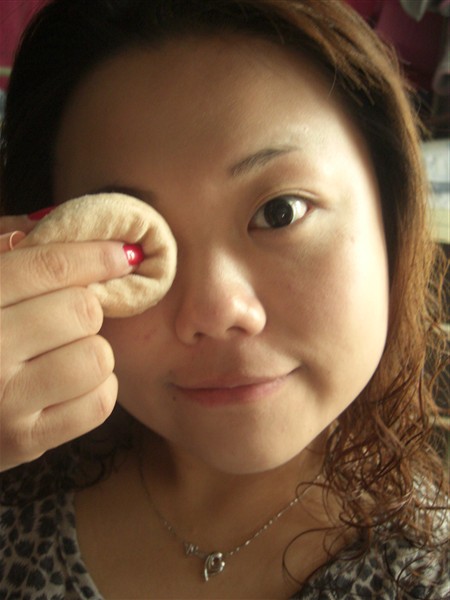 上散粉,用的是DODO的红色恋人,自己配了个大扑子,将粉倒在扑上,然后对折揉匀,再轻轻拍在面上