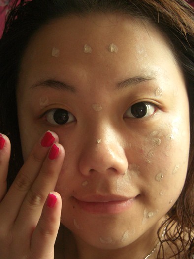 遮瑕用的是SKIN FOOD的香蕉遮瑕笔,T字部位提亮,眼眶周围提亮遮瑕,痘疤遮瑕,还有嘴角千万别忘了。之后再用手轻轻推开,记住一定要顺着毛孔~~