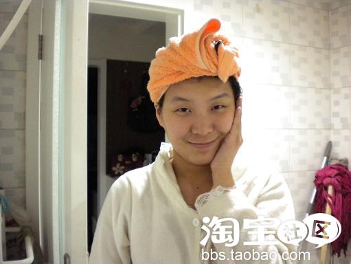 把头发吹干~看到我脸白吧,哈哈,面膜~~一举两得啊,省时间还不怕吹的脸干了~