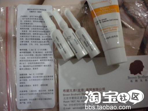 袋子里很Q的3个小瓶美白精华,还有一瓶大一些的面霜,虽然是试用小样,但没有应付,都很NICE的感觉。