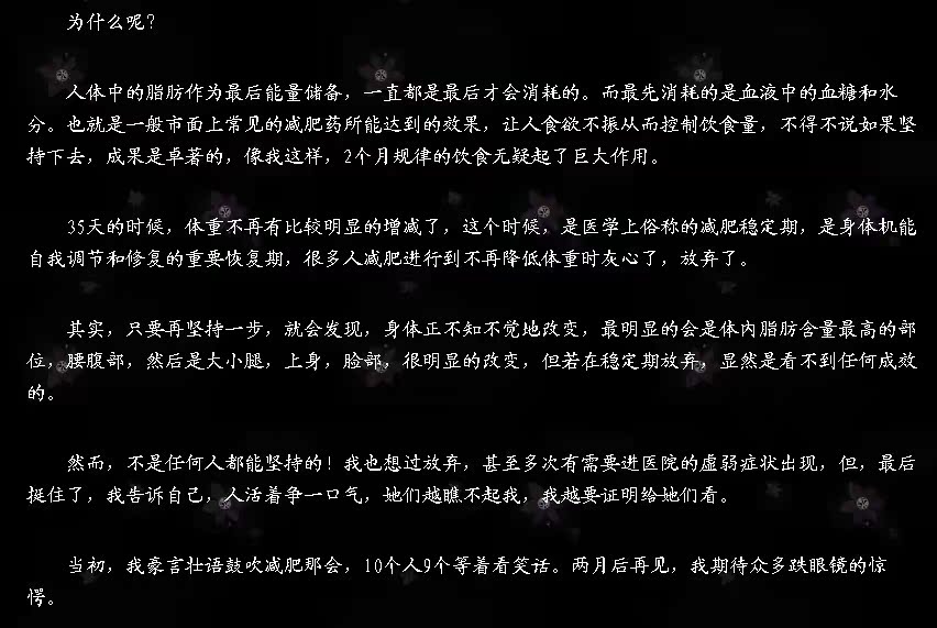 这里要特别申明一下,此帖不是广告贴,开此帖仅仅为了告诉一些正在盲目减肥的亲们,减肥要因人而异,且应该懂得适可而止!