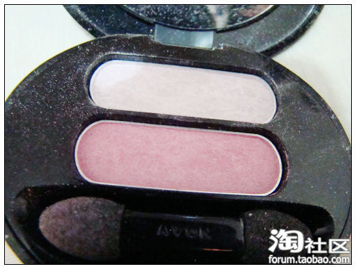 雅芳眼影两色:基本上颜色很赞,还有很多色,我买了粉色.有一点珠光效果,粉质.很细腻.但是脱妆巨严重.不过浅色的那款和别的眼影配效果很好,可以当高光粉用.(雅芳门店买的,大概32块大洋)