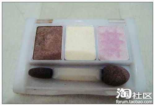 美宝莲三色眼影:还是一样白色部分当高光粉很好,粉质,珠光的效果,容易脱妆.但是很细腻.很柔润.(专柜买的,大概30几块大洋)