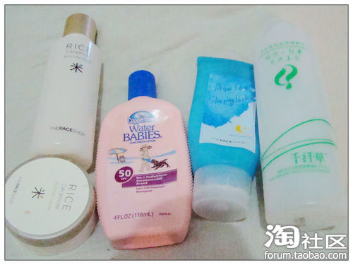 TFS大米水/乳:这牌子的东东是偶很喜欢的,比较自然,皮肤容易过敏啦,所以这个牌子温和性还是不错的,刚买的大米水和面霜左侧两个就是了,水很好比较补水滋润,就是有点香,面霜也可以,细致毛孔嘞,但是天气热的时候用可能有点油油的(淘宝买的,网购大概两瓶不到60块大洋)