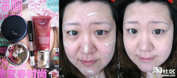 底妆 BB霜 遮瑕笔 猪油膏 定妆粉 至于牌子我就不介绍了 大家一目了然 而且我也不是卖化妆品的 牌子不重要 只要适合自己就好 我的化妆品也是贵贱不一 有时候我也很爱跟风 比如这个猪油膏 300买的 其实根本不适合我这种缺水皮肤 因为用了会起皮 很干 建议混合型或者油性MM用 偏干的千万别用 我也是偶尔T区稍微用一下的