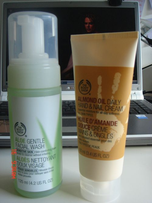 芦荟系列适合敏感肌肤,洗面奶是泡沫型的,所以用起来很舒服,很柔和。下面那款日霜稍微显得有些油腻,可能是因为带防晒指数的关系吧,这个系列的特点就是非常温和,用的时候芦荟的味道闻起来也很舒服。我要推荐的是第一张照片右边的杏仁油护手护甲油,特别滋润,适合冬天干燥的天气。下图左边是杏仁油护甲膏,如果指甲边上有肉刺什么的,涂个几次就好了,蛮实用的。