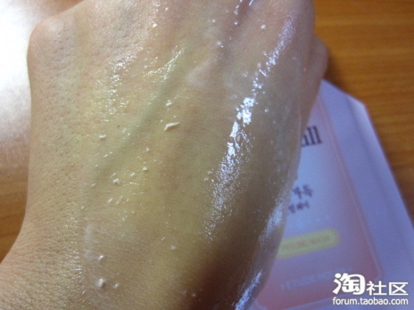 水分胶原的水,很有张力的,不会一下子就流下去,透明的感觉是凝胶状,瞬间吸收不油哦~~
