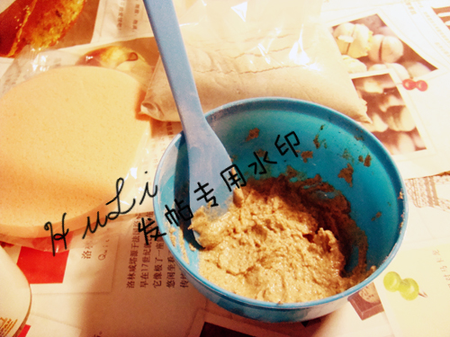 一开始 我先倒一点试试哈~~粉粉面膜要自己调 对我这种懒人是~咳~阿大下次记得调好了再给我哈哈~