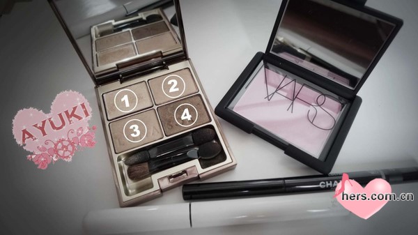 4·首先,用眼影中的3号色(浅棕色)打底.