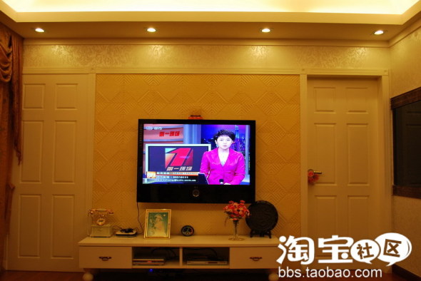 过去最常见的方法是电视墙与客厅的其他部位一样,在电视旁边配以一组矮柜,墙壁采用彩喷、墙纸、墙布等。彩喷多采用具有防潮、防霉、可洗、耐热等效能的涂料,而市场上的墙纸、墙布有多种花纹、图案,非常温馨、温暖。