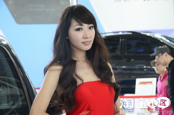 这个车模太敬业了,红裙露黑色内衣,极具杀伤力,足够达到太吸引眼球的目的。。。。。