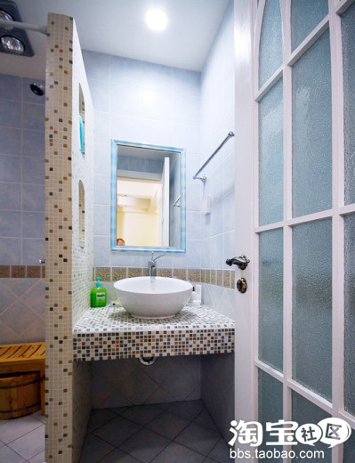 4平方的卫生间,很紧凑,在门后刚好放洗衣篮和垃圾桶,砖砖贴得很好!