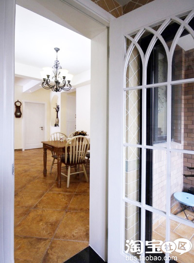 厨房的隔壁是北阳台,洗衣房,没有特别拍,能从这张照片中瞥到一些,两个阳台的地砖都是7字铺法,很好看