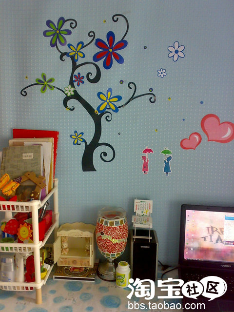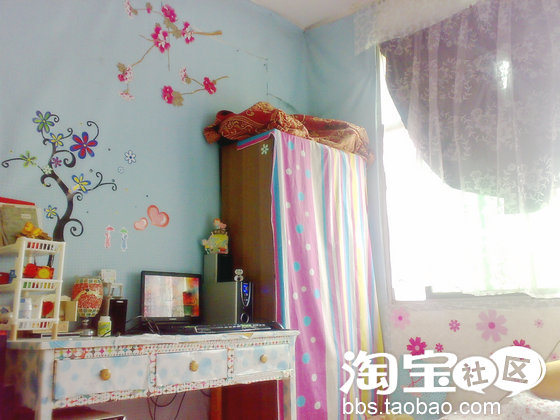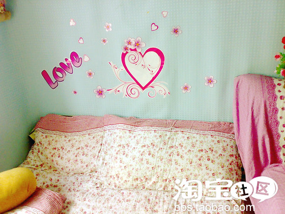 都说我的颜色很单调,我也觉得确实如此,所以就买了贴纸贴在床头,呵呵,一下改变了不少。