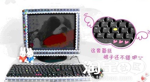 很普通的台式电脑,放在台面上,是那样的厚重与死气沉沉,有了蕾丝花边的装饰,赋予了它娇美可爱的灵魂。