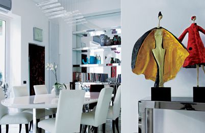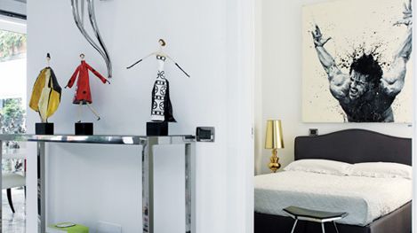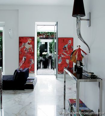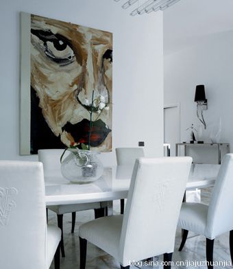 就设计而言,省略任何不必要的装饰,将空间化零为整,是每个设计师所追求的目标。整个家看似未经雕琢,这正是塞缪尔·马扎设计上的独到之处。从一个空间转到另一个空间,没有刻意在格局上大做文章,而是采用了非常巧妙的方式,并将一些商用空间的设计手法引入到了家中。每个空间的交汇处都会利用艺术品和小家具甚至是各种小摆件吸引视觉上的注意,从而忽略格局上带来的迂回曲折。“虽然白色调有一定的整体感觉,但是门与窗的造型必然会破坏这种整体感,于是我在每扇门的入门处都放置了小小的边桌,摆放了色彩艳丽的装饰品,以此来降低视觉上对门的关注。”
