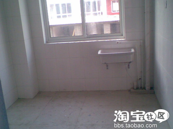 本来水池位置很靠中,然后让老公又当了回水工。。。这样我心爱的洗衣机(1600元)就可以放在这里了注,所有的墙漆都是老公刷的,至于怎么刷的这么齐,透明胶起了重要作用