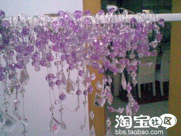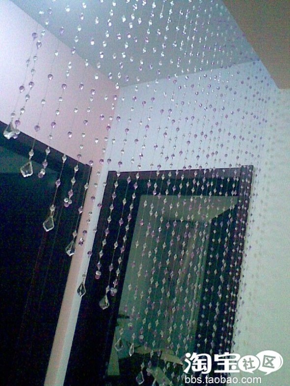 在厅与室的隔断上,我选择了珠帘,材料是在淘宝上淘的DIY珠子(总共150元),真不知道,没有淘宝,我的家要怎么打造了。。。