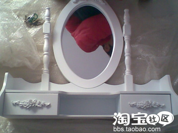 这是在淘宝上买的梳妆台500元,还未组装好,这个工作我也交给老公了,其实很简单,他干的不错。