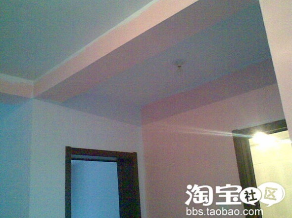 客厅的最大工程要数影视墙了,由于我家没有用着工程队,所以影视墙的工作也是我设计,我老公施工的,在这之前,我购买了粉红的墙漆(不到100元),准备让我的家立体起来,让露出的横梁成为亮点!