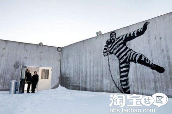 监狱甚至还特意花费一百万英镑(约一千万元人民币)请人在围墙上画上班克西风格的壁画。