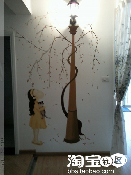 呵呵。。。最后成型的玄关手绘,在网上copy的,超喜欢!强迫我家的美术老师画的,当然,这个懒人找借口说“这么简单的学生就可以了。”结果,这个就是学生作品了。