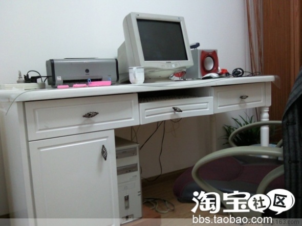 我家木工师傅用高超的手艺和无比的耐心做出来的书桌。后面没什么处理,昨天才弄了个荡秋千的墙贴!