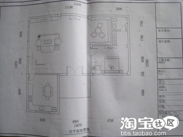 我家总共三层。。我先上传1~2层的图纸。。。1层是客厅 2层将来是我们的婚房。